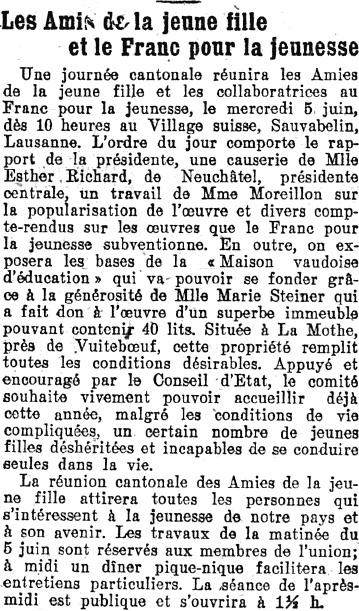 par Mlle Steiner pour y créer la Maison vaudoise.