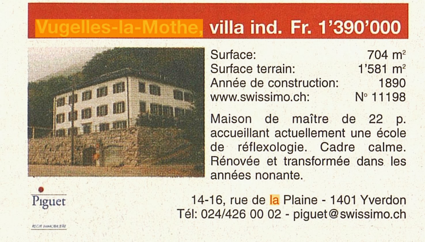 c’était le 15 août 2001, la Régie Piguet met le bâtiment en vente pour une