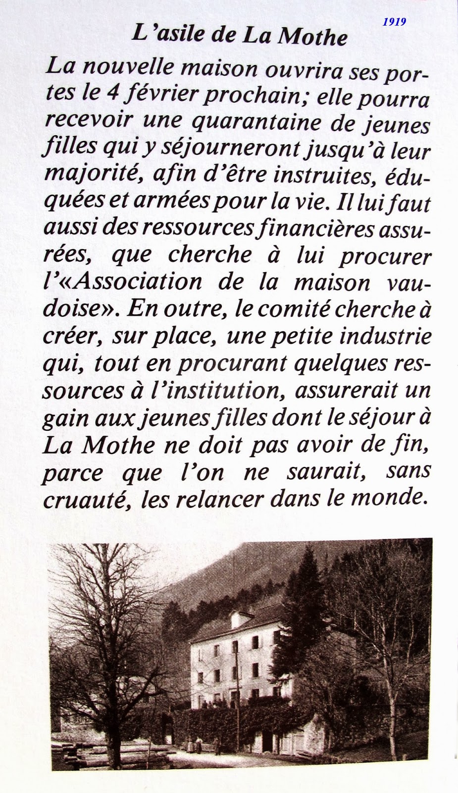 "Maison vaudoise d'éducation", La Mothe, Les Mûriers, Mémise
