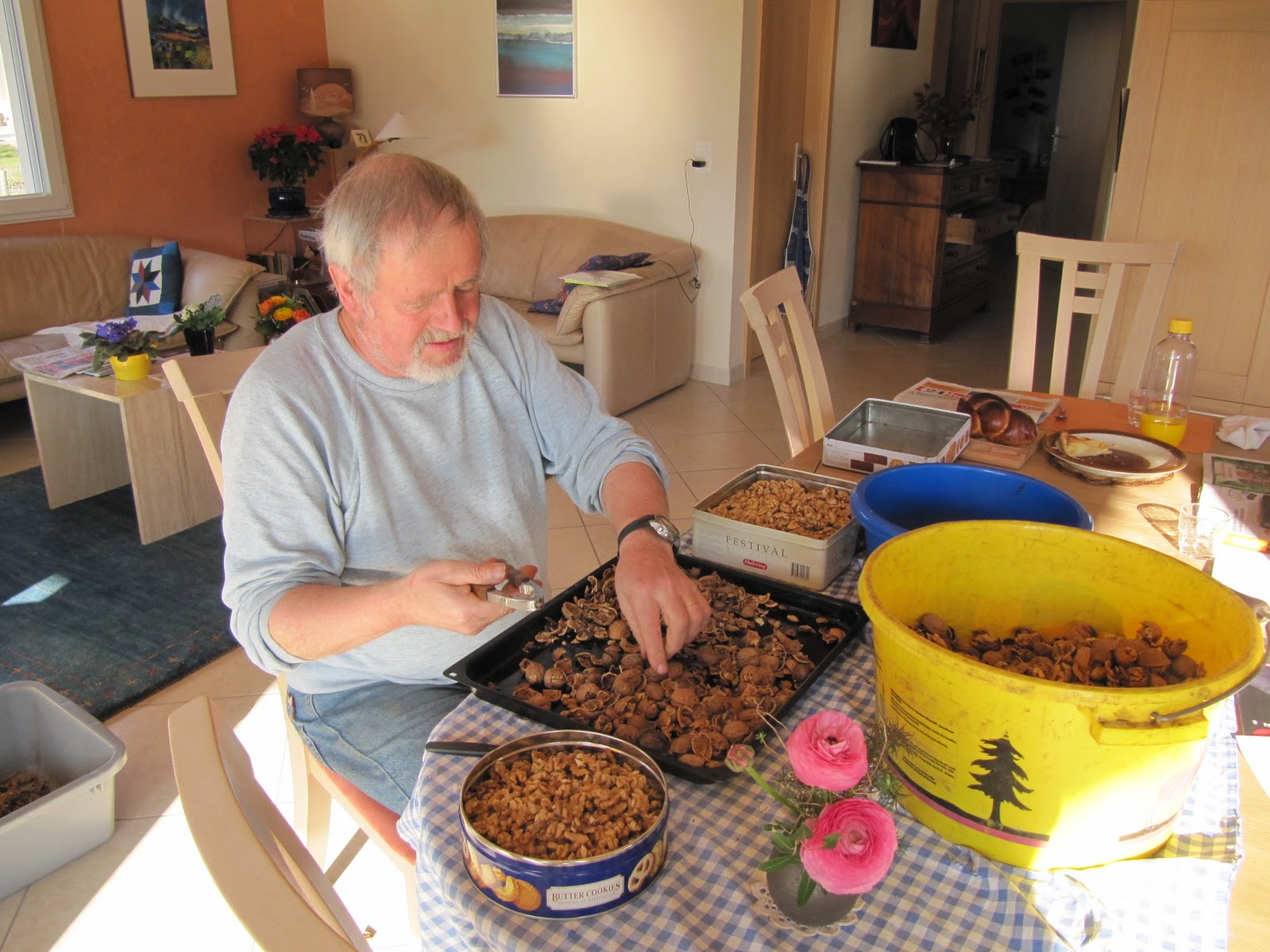 par ceux qui trient les noix à la cuisine et séparent coquilles et cerneaux.